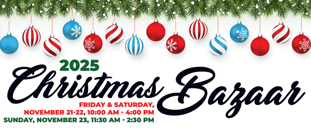 Seeking Vendors for our upcoming Christmas Bazaar on Nov. 21 – 23, 2025.